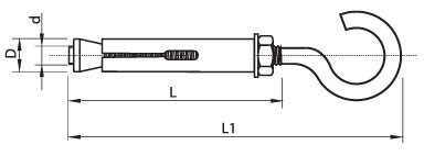 Анкерный болт с крюком (анкер-крюк) состоит из болта с головкой в виде крюка и запрессованной на стержне ограничительной шайбой, распорного конуса с внутренней резьбой и гильзы с лепестками на конце для жесткой фиксации детали в базовом материале. На все составные части анкера поверх цинкового покрытия нанесен методом пассивирования дополнительный защитно-декоративный слой, усиливающий устойчивость крепежа к агрессивному воздействию внешней среды.